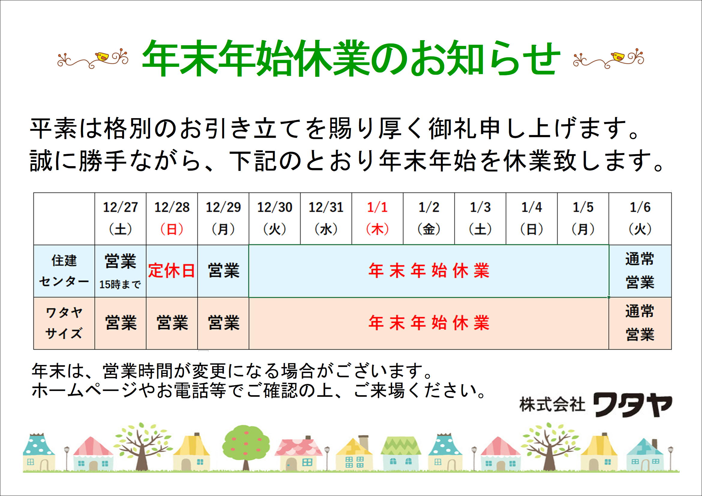 年末年始休暇のお知らせ