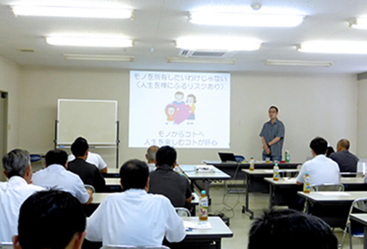 会社の使命感や企業理念・経営理念はもちろん、各部門の責任者による説明等の研修です。また、社会人としての基本的なビジネスマナーから言葉遣い、電話対応等の研修も行います。